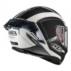Kask motocyklowy NZI TRENDY STREAM to kask integralny spełniający normę UN ECE R22.06, zaprojektowany z myślą o miejskiej jeździe i krótkich trasach. Sportowa, dynamiczna linia skorupy oraz wbudowany spoiler nadają mu agresywny wygląd i poprawiają stabilność podczas jazdy. Wizjer o wysokiej jakości optycznej zapewnia świetną widoczność, a przygotowanie pod wkładkę Pinlock pozwala łatwo zapobiegać parowaniu. To prosty, lekki i wygodny model, który dzięki nowoczesnej grafice wyróżnia się na tle innych kasków.