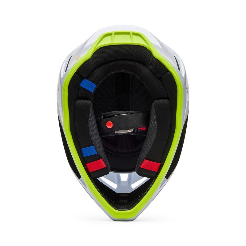 Kask Fox V3 oferuje zaawansowaną ochronę dzięki systemowi MIPS® oraz skorupie z włókna szklanego, która zapewnia odporność na uderzenia, jednocześnie redukując wagę. Wyposażony w wkładkę EPS MDEPS™ i system awaryjnego uwalniania poduszek policzkowych, kask zapewnia komfort, doskonałą wentylację oraz kompatybilność z systemami komunikacyjnymi i nawadniającymi, spełniając normy DOT i ECE 22.06.