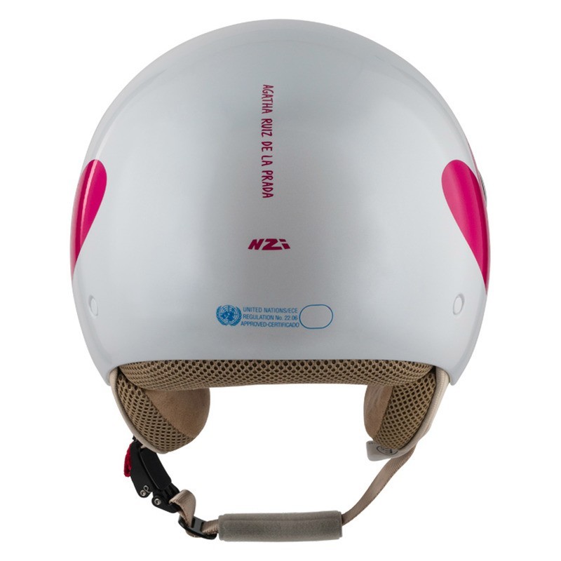 Kask motocyklowy NZI PASARELA to ultralekki, miejski kask typu mini-jet, zaprojektowany przez Agathę Ruiz de la Prada i wyróżniający się unikalnym, modowym stylem. Wykonany z innowacyjnej skorupy Nugema®, łączącej termoplastik o wysokiej odporności na uderzenia, zapewnia trwałość i bezpieczeństwo przy zachowaniu minimalnej wagi. To idealny wybór do codziennej jazdy miejskiej - stylowy, komfortowy i niezwykle praktyczny.