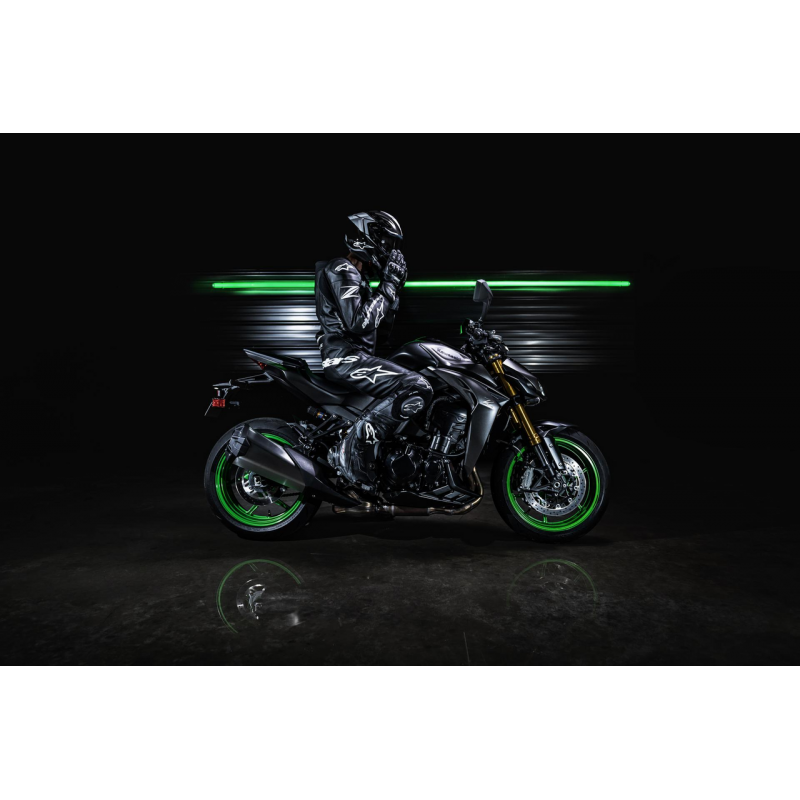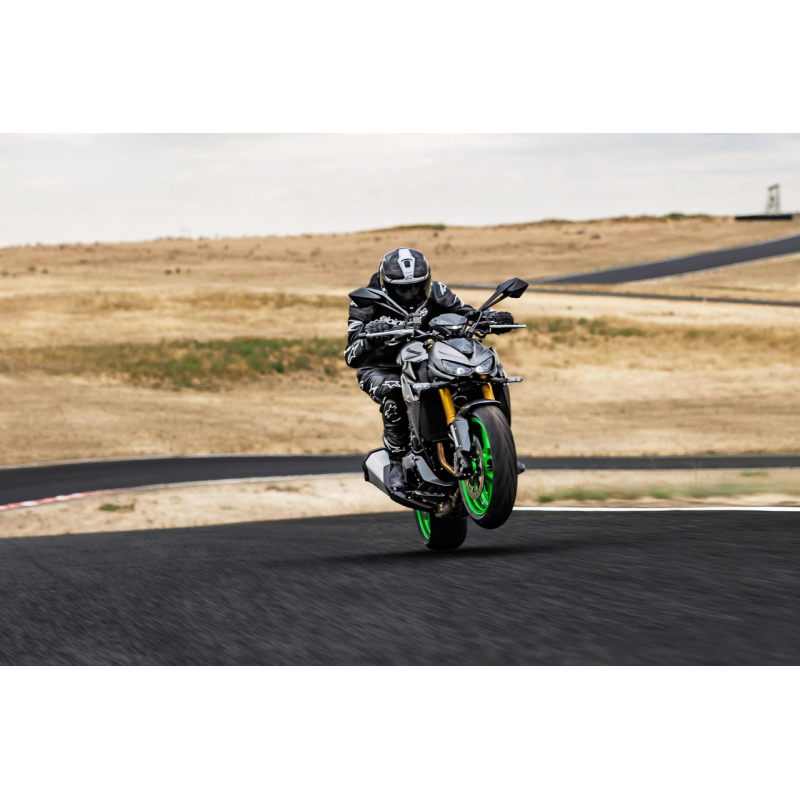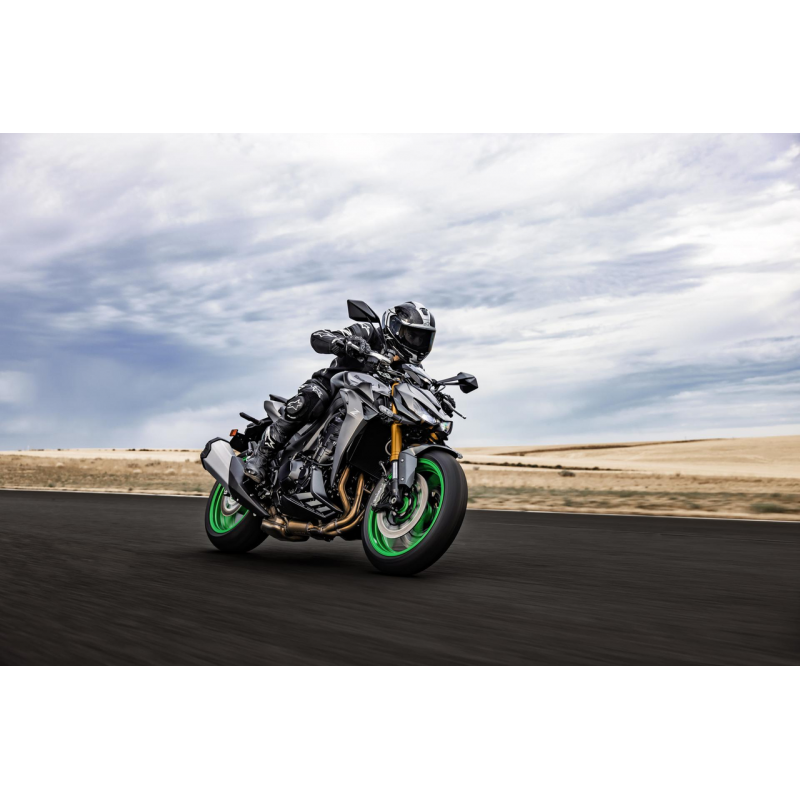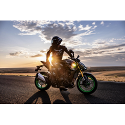 Kawasaki Z1100 2026 to czający się drapieżnik nowej generacji, napędzany potężnym, 1 099-centymetrowym silnikiem rzędowym o imponującym momencie obrotowym i mocy, który w połączeniu z zaawansowanym pakietem elektronicznych systemów wspomagających, sportowym zawieszeniem oraz precyzyjnym prowadzeniem zapewnia niezwykle intensywne wrażenia z jazdy, łącząc agresywną stylistykę z technologią klasy premium, stworzoną z myślą o kierowcach poszukujących maksymalnych emocji i pełnej kontroli nad maszyną. Dodatkowo w wersji SE motocykl wyposażony jest w układ hamulcowy Brembo, centralne regulowane zawieszenie Öhlins oraz limitowane malowanie.