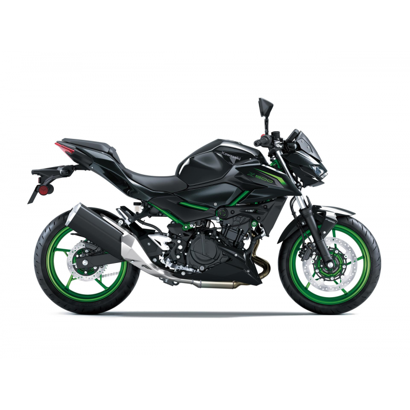 Kawasaki Z500 model 2026 to zwinny i stylowy motocykl klasy naked, napędzany dynamicznym dwucylindrowym silnikiem o mocy 45 koni mechanicznych i niespotykanie wysokim momentem obrotowym 43 Nm. Dzięki lekkiej konstrukcji, precyzyjnemu prowadzeniu oraz ergonomicznemu położeniu kierownicy, oferuje wyjątkowe doznania z jazdy, a dzięki niskiej masie zapewnia bardzo łatwą kontrolę nad pojazdem. W wersji SE motocykl dodatkowo wyposażony jest w 5-calowy kolorowy wyświetlacz TFT, kierunkowskazy LED oraz limitowane zielone lub czerwone malowanie.