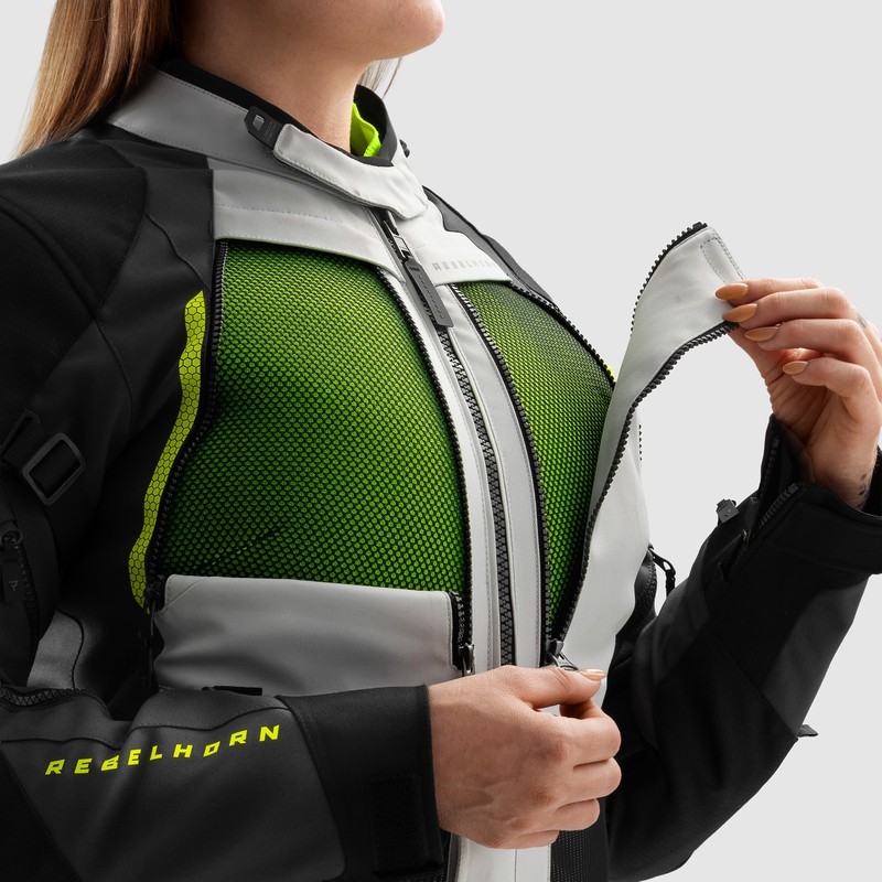 KURTKA MOTOCYKLOWA TEKSTYLNA DAMSKA REBELHORN HARDY 3.0 BLACK GREY FLUO YELLOW