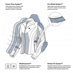 Regulacja w pasie, bicepsie, przedramieniu oraz biodrach pozwala na idealne dopasowanie kurtki do sylwetki użytkownika, co zapewnia pełen komfort.