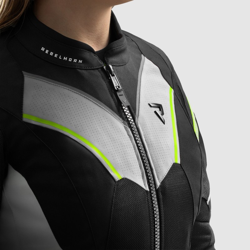 KURTKA MOTOCYKLOWA TEKSTYLNA DAMSKA REBELHORN HIFLOW 5 BLACK GREY FLUO YELLOW