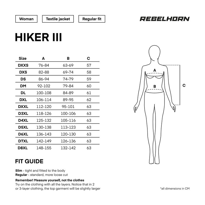 Kurtka motocyklowa tekstylna Rebelhorn Hiker III Lady to model dla osób, które zaczynają przygodę z turystyką motocyklową. Został wykonany z wytrzymałych materiałów jak poliester 600D i 1000D, w zestawie ma wodoodporną membranę Reissa®.