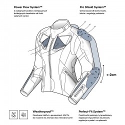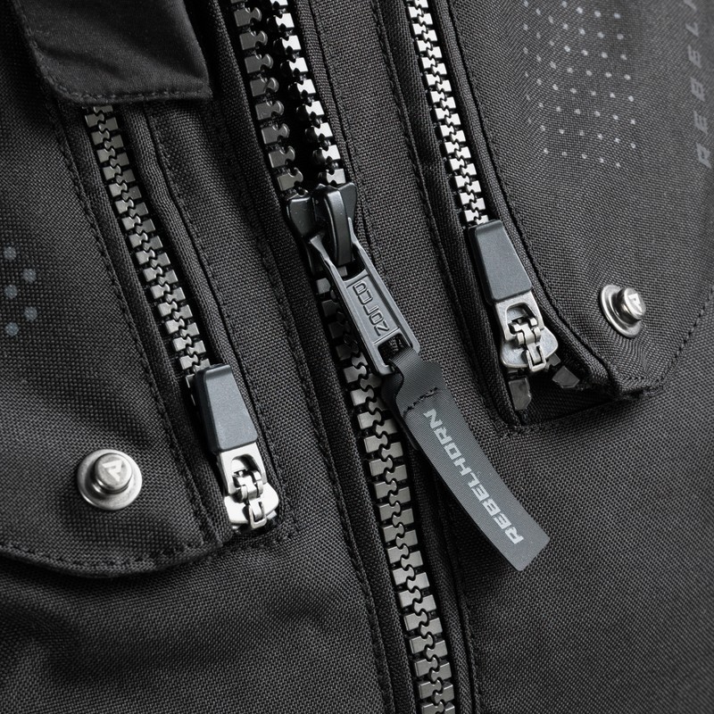 • Zamki łączące typu 8VST: Dwa rodzaje zamków (360 oraz krótki) do łączenia kurtki ze spodniami,