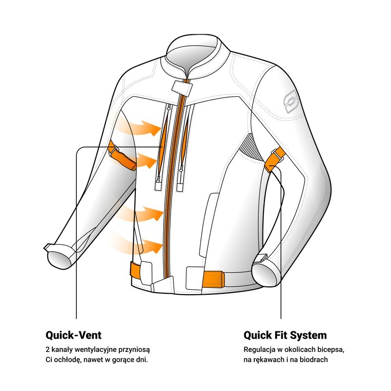 • Regulacja obwodu rękawów w bicepsie pozwala optymalnie dopasować je do Twojej sylwetki