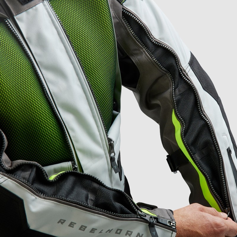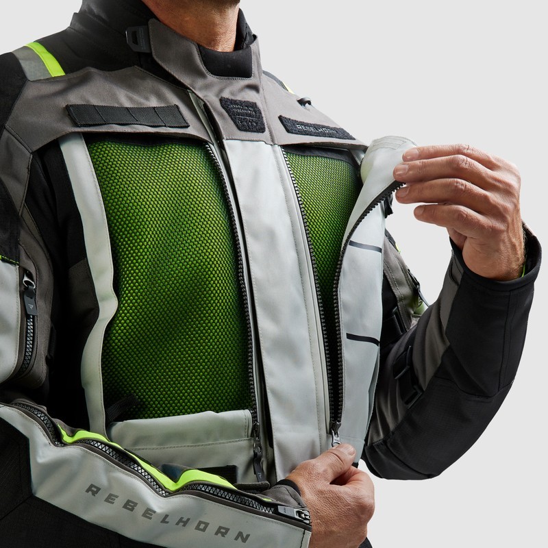 Rebelhorn Cubby V to motocyklowa kurtka turystyczna 3-warstwowa, stworzona z myślą o motocyklistach, którzy podróżują w różnych warunkach. Dzięki nowoczesnej membranie HydraShieldTM Pro typu in&out oraz innowacyjnym rozwiązaniom, kurtka zapewnia zarówno bezpieczeństwo, jak i komfort jazdy. Rozbudowany system wentylacji oraz wypinana kamizelka ocieplająca sprawiają, że kurtka ta jest gotowa na każdą przygodę niezależnie od pogody