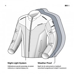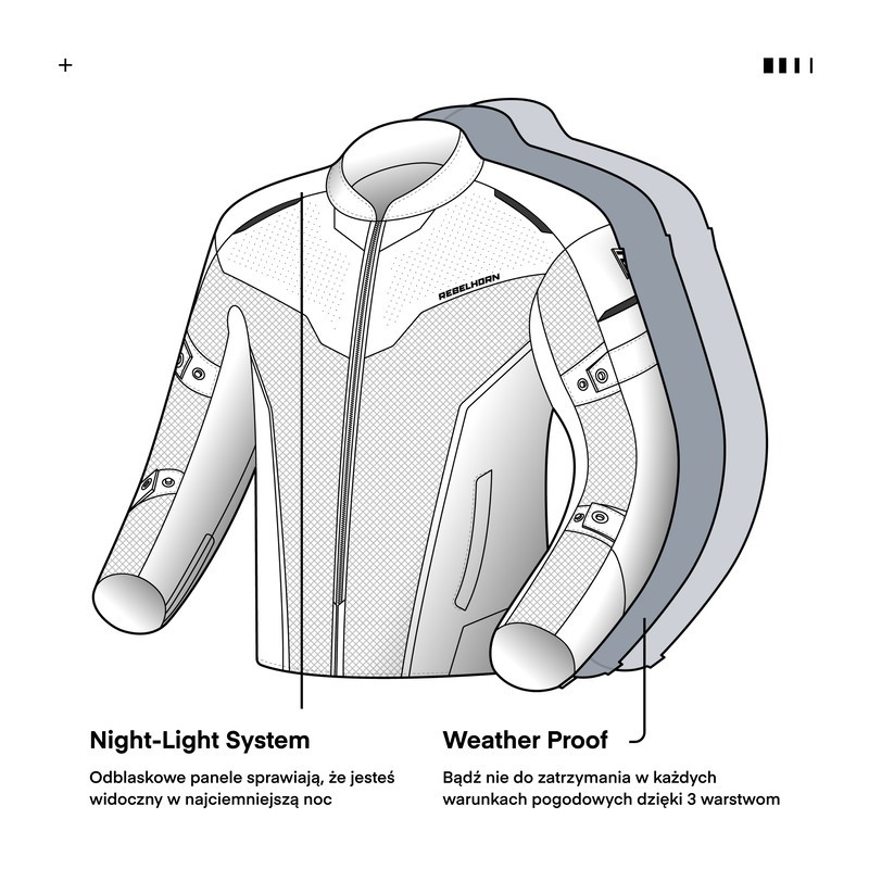 Użycie steel meshu oraz zastosowanie perforacji w zewnętrznej warstwie kurtki zapewnia odpowiednią cyrkulację powietrza w gorące dni. Wypinana podpinka ocieplająca zapewnia z kolei odpowiedni komfort termiczny w chłodniejszych okresach.