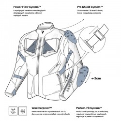 Przemyślane połączenie obydwu tych materiałów sprawia, że kurtka jest wyjątkowo wygodna, będąc jednocześnie bezpieczną i odporną na przetarcia czy rozdarcia.