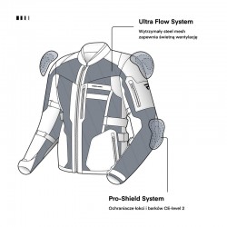 Kurtka jest bardzo lekka a jednocześnie zapewnia wysoki poziom ochrony, dzięki ochraniaczom CE-level 2.
