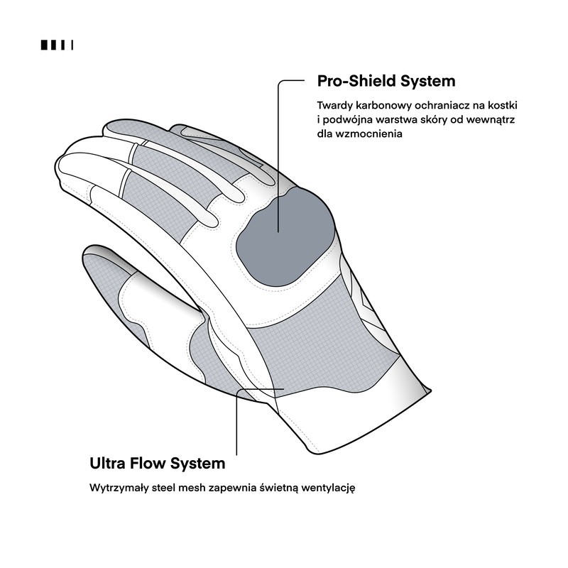 Rebelhorn Gap III to krótkie, miejskie rękawice przeznaczone do jazdy w wysokich temperaturach. Mają panele z meshu i perforacje na zewnętrznej części dłoni. Anatomiczna konstrukcja pozwala na idealne dopasowanie. Za ochronę w rękawicach Rebelhorn Gap III odpowiadają panele z pianki absorbującej siłę uderzenia i twarde osłony nadgarstków.