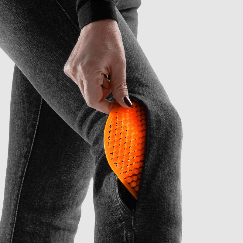 Rebelhorn Classic Mono Women - Damskie jeansy motocyklowe typu monolayer stworzone dla kobiet, które cenią klasyczny styl, wygodę i subtelny seksapil. Rebelhorn Classic Mono Women to odpowiedź marki na potrzeby motocyklistek poszukujących bezpiecznych i wygodnych spodni, które wyglądają jak klasyczne jeansy. Wysoki stan podkreśla kobiecą sylwetkę, a elastyczna tkanina i dopasowany krój gwarantują pełen komfort jazdy. Dzięki wyciąganym od zewnątrz protektorom kolan, po dotarciu na miejsce możesz z łatwością przekształcić je w zwykłe jeansy - bez zdejmowania spodni.