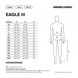 Jeansy motocyklowe Rebelhorn Eagle III gwarantują wygodę i komfort dzięki zastosowaniu elastycznych paneli harmonijkowych oraz 4-way strechu. Bezpieczeństwo zapewniają aramidowe panele na biodrach i w pasie oraz kolanach, sięgające aż do połowy kości piszczelowej oraz ochraniacze renomowanej marki SAS-TEC®. Rebelhorn Eagle III można spiąć z kurtką dzięki wszytemu, krótkiemu zamkowi.