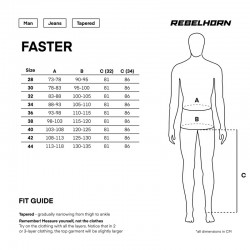 Rebelhorn Faster – Spodnie motocyklowe o charakterystycznym, agresywnym wyglądzie, inspirowanym militarnym stylem. Rebelhorn Faster to model stworzony z myślą o motocyklistach, którzy oczekują wygody, swobody ruchów i funkcjonalności w każdej sytuacji. Elastyczny materiał, bojówkowy krój i certyfikowane ochraniacze czynią z nich spodnie gotowe na każdą misję – od codziennych dojazdów do pracy po weekendowe wypady za miasto.