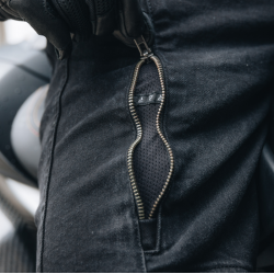 Jeansy motocyklowe Rebelhorn HAWK III idealnie sprawdzą się do miejskiej jazdy. Na udach znajduje się otwierana na zamek wentylacja. Praktyczne zamki na nogawkach ułatwiają wkładanie spodni oraz umożliwiają włożenie wysokiego buta motocyklowego do środka nogawki.