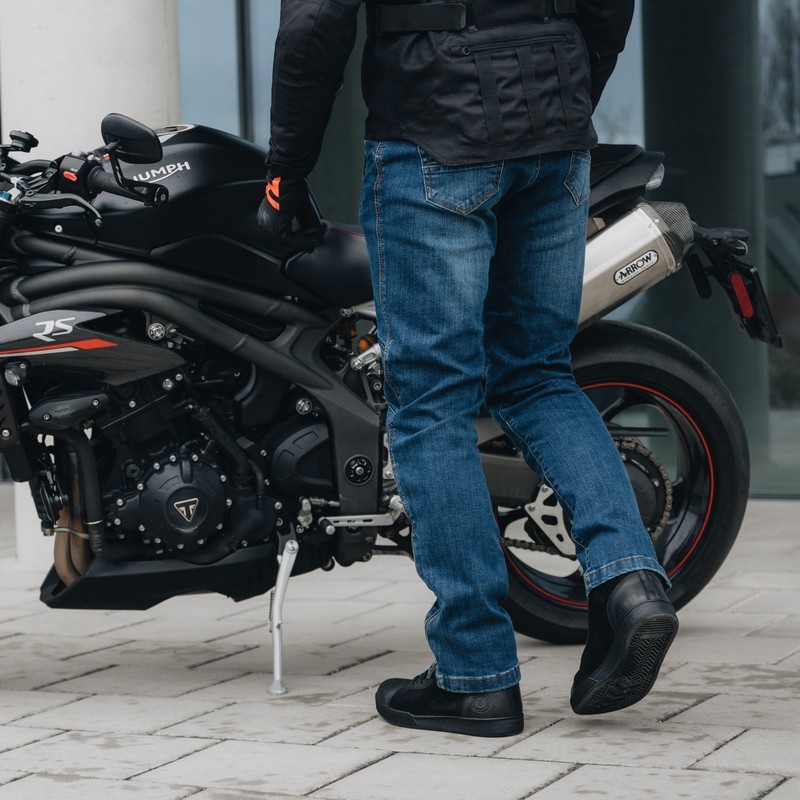 Jeansy motocyklowe Rebelhorn HAWK III idealnie sprawdzą się do miejskiej jazdy. Na udach znajduje się otwierana na zamek wentylacja. Praktyczne zamki na nogawkach ułatwiają wkładanie spodni oraz umożliwiają włożenie wysokiego buta motocyklowego do środka nogawki.