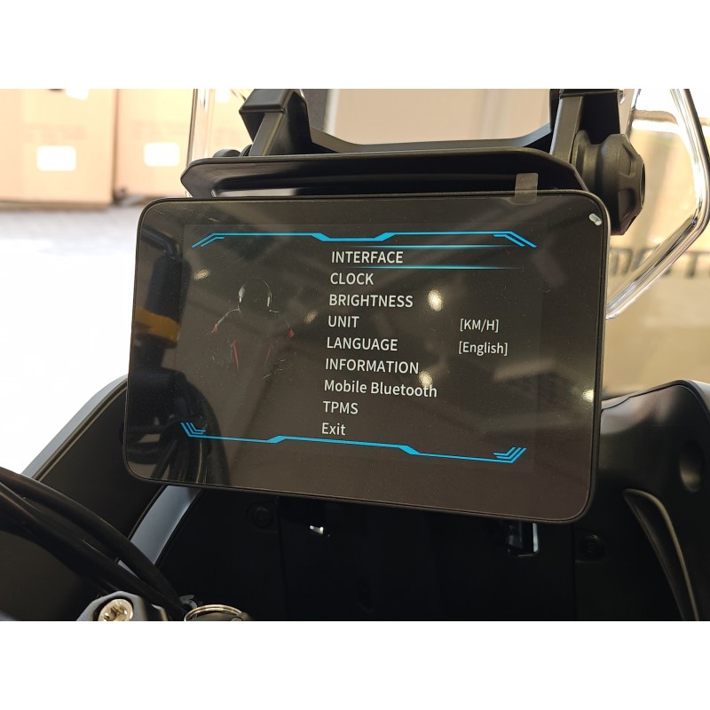 Przejrzysty, nowoczesny wyświetlacz TFT wyraźnie pokazuje aktualną prędkość, aktualne obroty, licznik przebiegu, zawartość zbiornika paliwa, czas jazdy, a także zawiera wskaźnik włączonego biegu. Dodatkową funkcją jest wskaźnik ciśnienia opon.