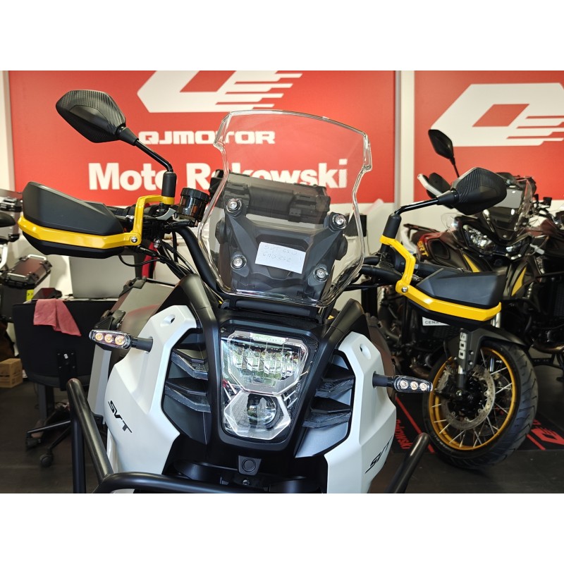 SVT 650 X swoją stylistyką nawiązuje do motocykli rajdowych biorących udział w wyścigach po pustynnych bezdrożach. Jego charakterystyczna przednia owiewka jest wąska i wysoka oraz wyróżnia się pionowym rozmieszczeniem dwóch reflektorów LED. Osłona przednia zapewnia doskonałą ochronę kierowcy przed wiatrem dzięki manualnej, łatwej w regulacji wysokości położenia szyby.