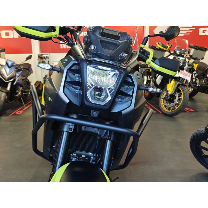 SVT 650 X swoją stylistyką nawiązuje do motocykli rajdowych biorących udział w wyścigach po pustynnych bezdrożach. Jego charakterystyczna przednia owiewka jest wąska i wysoka oraz wyróżnia się pionowym rozmieszczeniem dwóch reflektorów LED. Osłona przednia zapewnia doskonałą ochronę kierowcy przed wiatrem dzięki manualnej, łatwej w regulacji wysokości położenia szyby.