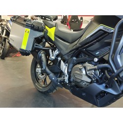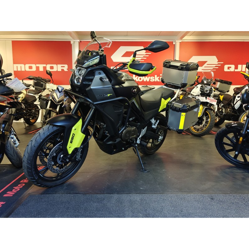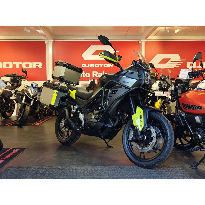 Hamulce w modelu SVT 650X składają się z dwóch tarcz o średnicy 320 mm z przodu z radialnymi czterotłoczkowymi zaciskami Brembo i tarczy o średnicy 260 mm z tyłu z jednotłoczkowym zaciskiem, współpracujących z dwukanałowym układem ABS firmy Bosch. Odwrócony widelec o średnicy 43 mm umożliwia regulację napięcia wstępnego i tłumienia odbicia oraz zapewnia skok 145 mm To wszystko gwarantuje bezproblemową jazdę w każdym terenie, a także komfort przy wyższych prędkościach na szosie. Tylny amortyzator ma możliwość regulacji napięcia wstępnego sprężyny.