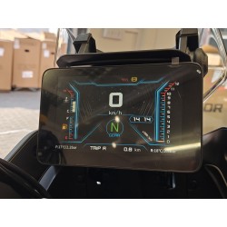 Przejrzysty, nowoczesny wyświetlacz TFT wyraźnie pokazuje aktualną prędkość, aktualne obroty, licznik przebiegu, zawartość zbiornika paliwa, czas jazdy, a także zawiera wskaźnik włączonego biegu. Dodatkową funkcją jest wskaźnik ciśnienia opon.