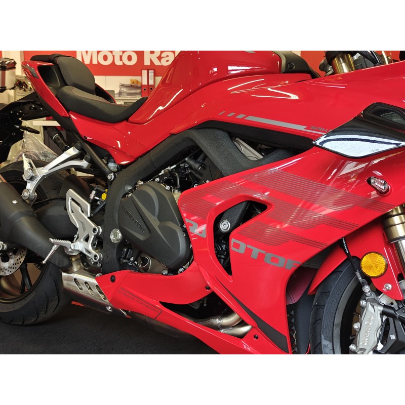 SRK 800 RR bierze udział w wyścigach supersport WSBK z kierowcą Raffaele De Rosą! Zespół wykorzystuje doświadczenia z toru do udoskonalania seryjnych modeli, które możesz potem kupić.