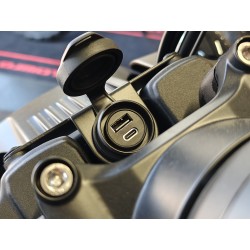 W kokpicie, obok panelu TFT, znajduje się zintegrowane gniazdo USB-A i USB-C. Dzięki temu możesz wygodnie ładować telefon podczas podróży. Dodatkowo gniazda USB są zabezpieczone wodoodporną gumową osłoną.